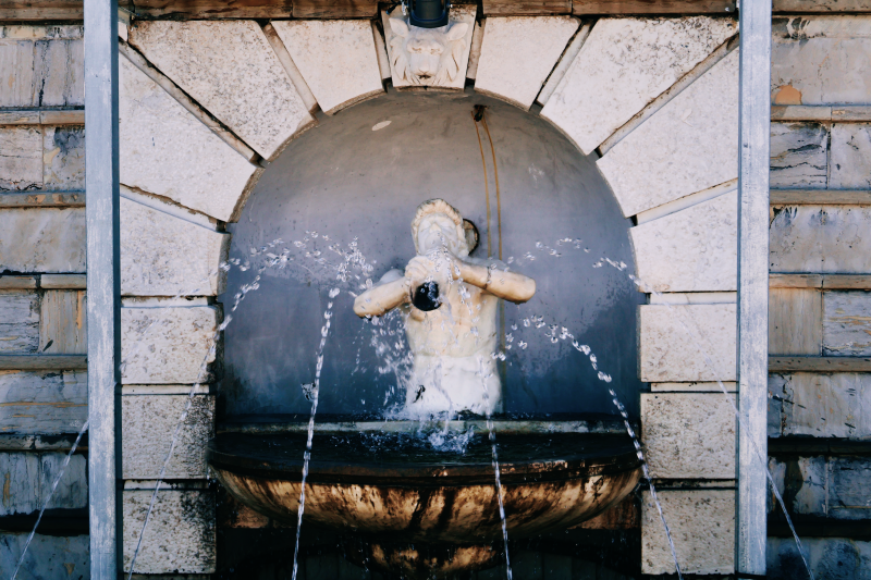 Maqueta de la Torre Eiffel, envuelta por la sombra de los árboles