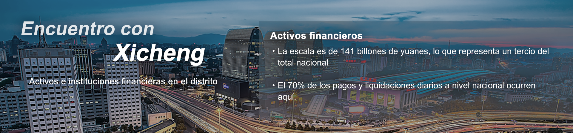 El Distrito de Xicheng, como zona núcleo de la capital, cuenta con abundantes recursos y una ubicación geográfica única, lo que le confiere una ventaja significativa en estos ámbitos. Xicheng alberga La Calle Financiera, un centro de gestión financiera nacional que concentra una gran cantidad de instituciones y empresas financieras. En 2023, el Producto Interno Bruto (PIB) regional del Distrito de Xicheng superó los 600.000 millones de yuanes, con un crecimiento interanual aproximado del 5%. El valor añadido de la industria financiera representó el 54,4% del PIB, y el volumen de activos de las instituciones financieras superó los 150 billones de yuanes, lo que representa a un tercio del total nacional.