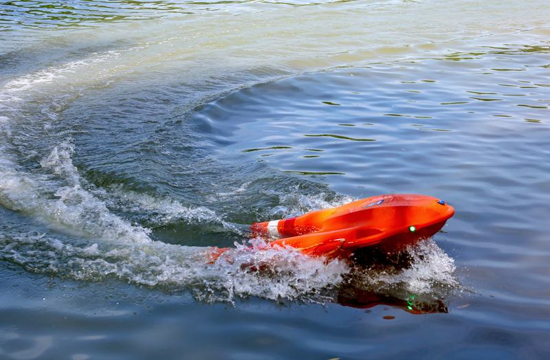 El 7 de agosto, en el Parque Haidian, un robot de rescate acuático realiza una demostración.