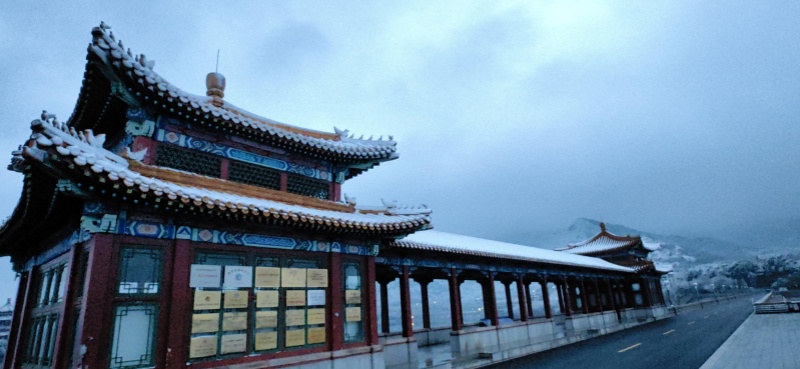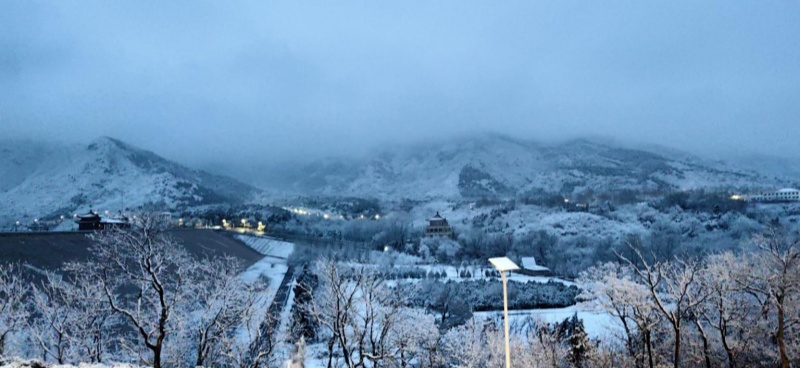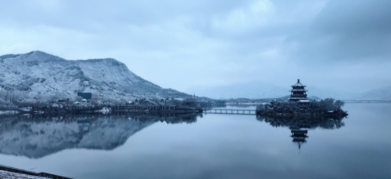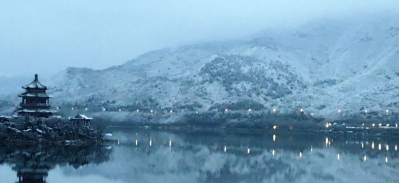 Tras la Fiesta de la Primavera, llega la primera nevada auspiciosa. La nieve cae sobre las montañas verdes y la luz de la mañana comienza a despertar. En el embalse de las Trece Tumbas, en Changping, el lago y las montañas se muestran en una belleza serena, delineando una escena que recuerda a un lienzo de tinta china.