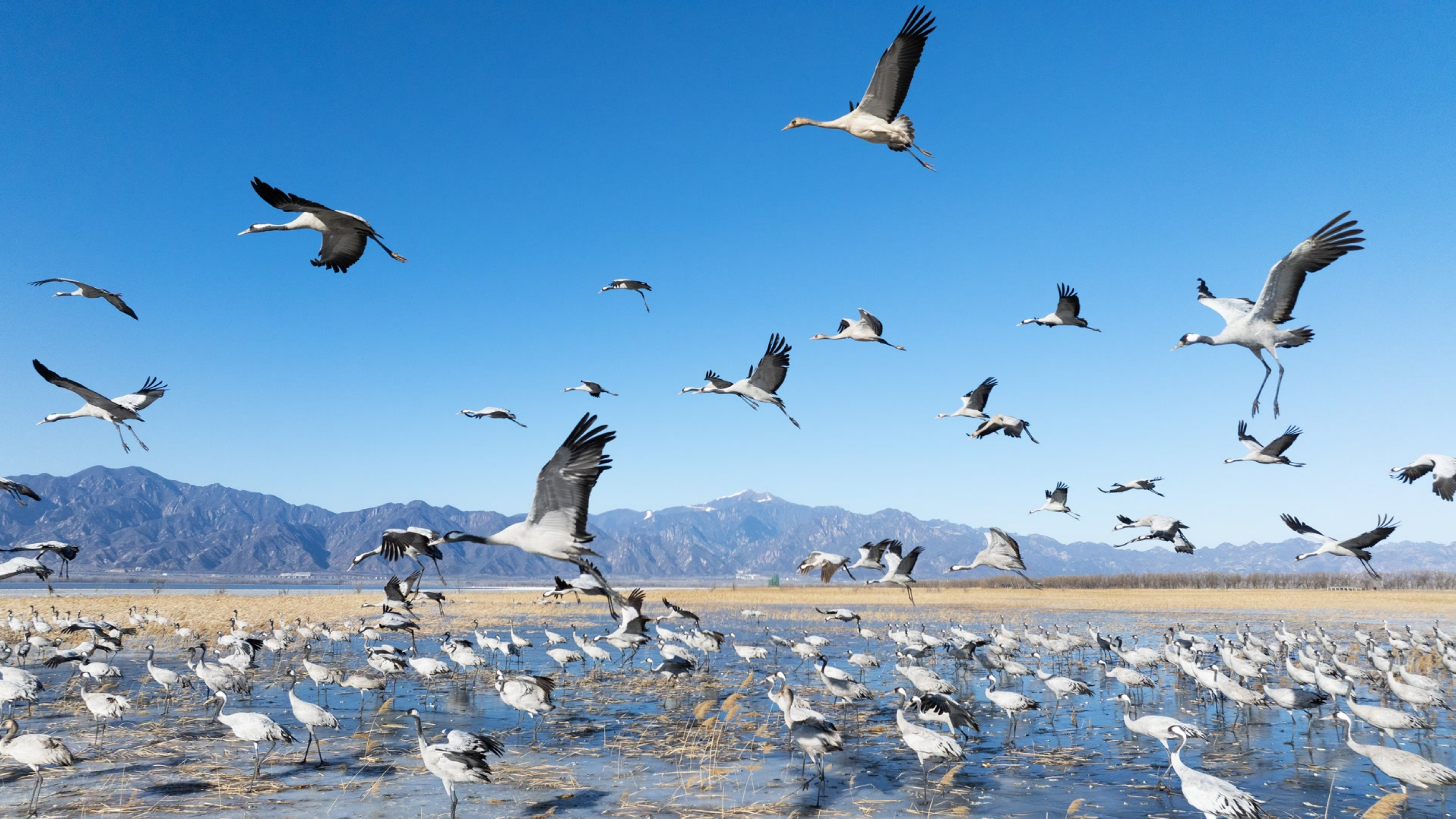 En los últimos días, grandes grupos de grullas comunes y patos salvajes han ido llegando al Humedal Internacional Importante del Lago Yeya.Gracias a la mejora del entorno ecológico y al refuerzo de las medidas de conservación, el lugar se ha convertido en un refugio clave y estación de paso para numerosas especies de aves poco comunes.Fuente:Aplicación del Beijing Daily y Gobierno Popular del Distrito de Miyun.