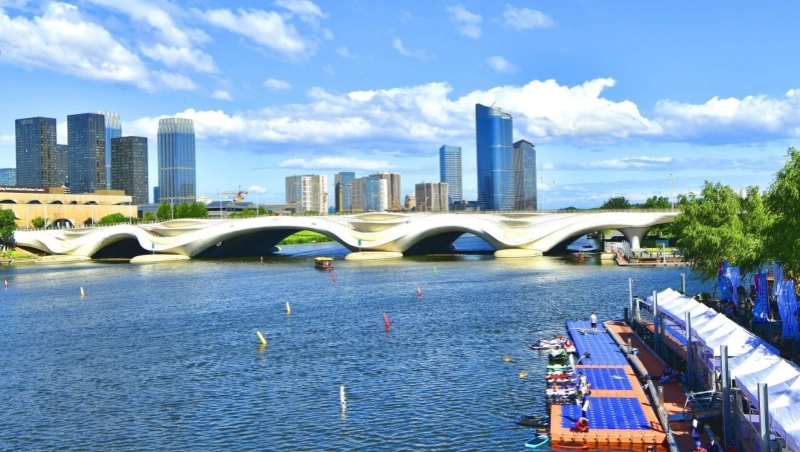 El 9 de noviembre, la primera vía fluvial que conecta el centro urbano con el Centro Municipal Administrativo de Beijing ya cumplió con las condiciones de navegación. Con una longitud total de 28 kilómetros, el recorrido parte de Indigo, en el Río Bahe, atraviesa las zonas clave de Jiangtai, Jiuxianqiao, Dongba y Jinzhan, cruza el Río Wenyu y finalmente llega al área del Gran Canal, en el Centro Municipal Administrativo de Beijing. Se trata de la línea navegable más larga dentro del área urbana de la capital. Actualmente, el tramo de 15 kilómetros entre Indigo y el Río Wenyu se encuentra en fase de prueba, y las cuatro esclusas a lo largo de la ruta ya están completamente construidas.