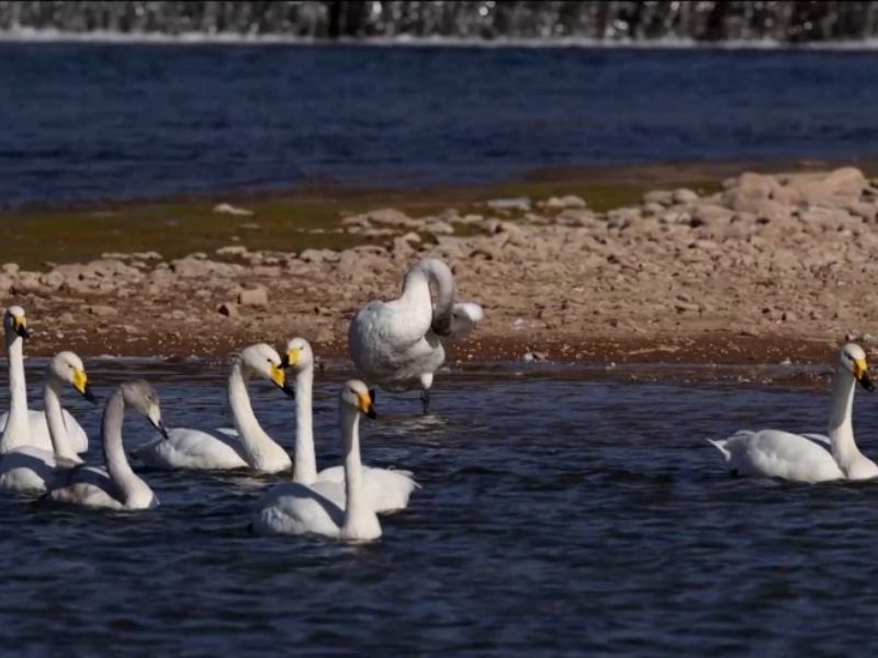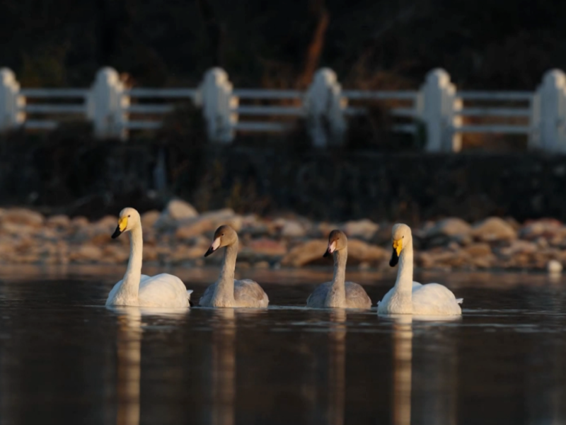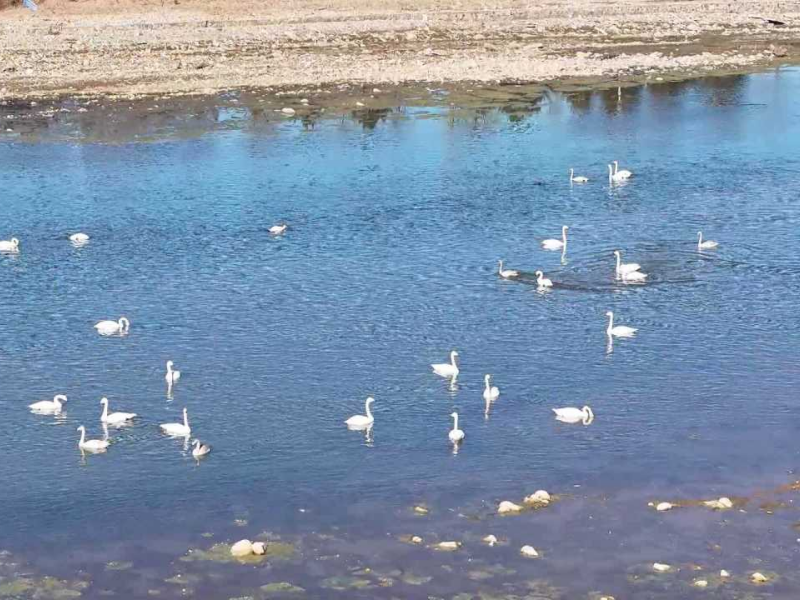 Este invierno, el tramo de Taishitun del río Qingshui, en el distrito de Miyun de Beijing, ha recibido a un grupo de elegantes “visitantes”: más de sesenta cisnes han llegado de forma sucesiva para pasar el invierno. Para sorpresa de los aficionados a la observación de aves, por primera vez se ha documentado aquí una valiosa escena en la que tres especies raras de cisnes —el cisne cantor, el cisne mudo y el cisne chico— habitan juntas en un mismo grupo.