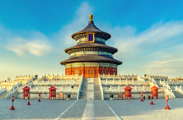 El Palacio Imperial de Beijing, comúnmente llamada la Ciudad Prohibida, era un conjunto de palacios imperiales de China durante las dinastías Ming y Qing. Se sitúa en el centro del eje central de Beijing y es la sustancia de los edificios palaciegos antiguos de China. La Ciudad Prohibida tiene tres palacios principales como el núcleo, y ocupa un área de 720.000 metros cuadrados en total, con un área de construcción de unos 150.000 metros cuadrados. Cuenta con más de 70 palacios grandes y pequeños y más de 9.000 habitaciones. Es uno de los edificios antiguos existentes de estructura de madera más grandes y mejor conservados del mundo. La Ciudad Prohibida de Beijing ocupa el primer lugar de los cinco palacios más grandes del mundo, junto con el Palacio de Versalles en Francia, el Palacio de Buckingham en el Reino Unido, la Casa Blanca en los Estados Unidos y el Kremlin en Rusia. Fue declarada Patrimonio de la Humanidad en 1987.