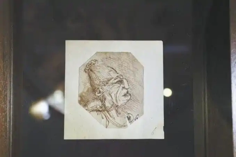 En la sala de exposición, "El Rostro de la Anciana" ocupa su propia vitrina, siendo la única obra original entre los exhibidos. Este fragmento de manuscrito fue creado entre 1490 y 1510.